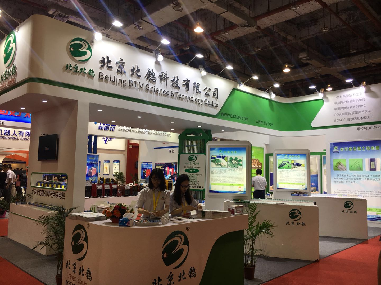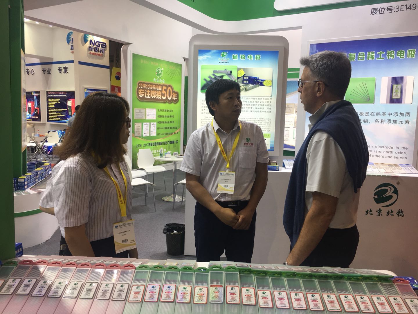 展会期间,公司展台三大区域(业务洽谈区、前台接待区、产品展示区)人山人海,与同行业其他厂家展台门可罗雀的景象形成鲜明的对比,更是令他们望其项背。由于参观者应接不暇,在业务洽谈区,每个业务员几乎需要不间断的同时接待三、四个客户,很好的说明了我们业务人员的能力及产品的市场需求度。在产品展示区,钨电极、及焊材一应俱全,摄像灯不停的闪烁,客户纷纷摄影留念,同行业厂家更是派出学习小组前来参观学习;大屏幕液晶电视轮番播放公司的企业宣传片,这是公司企业形象,生产能力及信心的真实体现,同行业任何厂家都没有实力与信心将其生产线展示出来,来访者无不驻足观看并啧啧称赞。前台接待区更是忙不停息,业务洽谈区无法接待的客户,只能在前台接待区排队互留名片并领取我公司产品目录,以寻求后续的合作。在此次展会上参展人员分工负责、相互协调,诠释了团队合作精神,圆满的完成了客户的接待及品牌的宣传工作。我公司生产的钨电极产品依然是钨电极行业的旗帜、依然走在焊接行业的前沿。